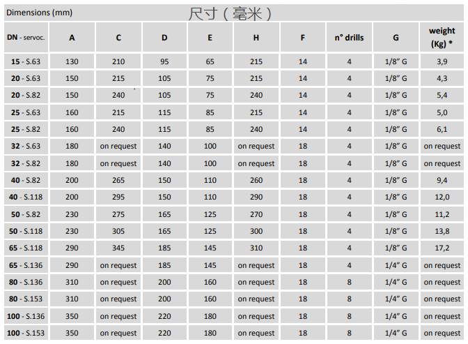 尺寸 (DN) DN 15 - 100 評